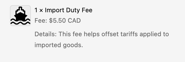 Presenting tariff fees this way creates transparency and reduces confusion during checkout. Customers feel informed rather than blindsided, which leads to more completed orders and fewer support questions.
