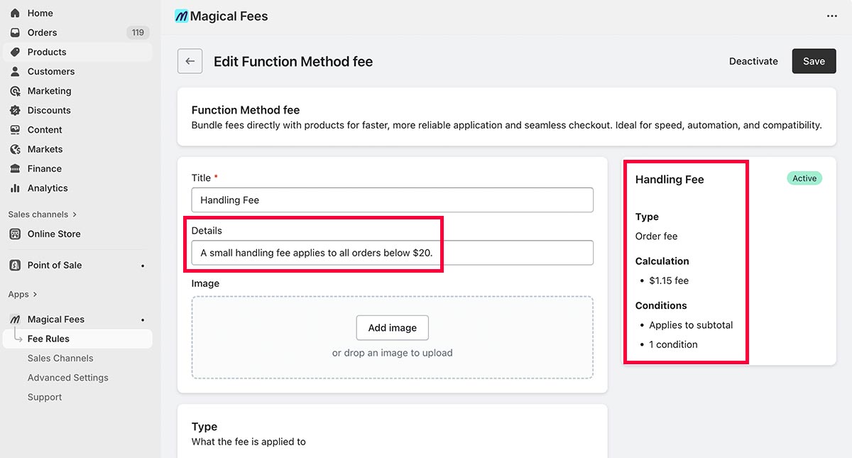 Step 2: Configure a “Small order handling fee” rule in Magical Product Fees